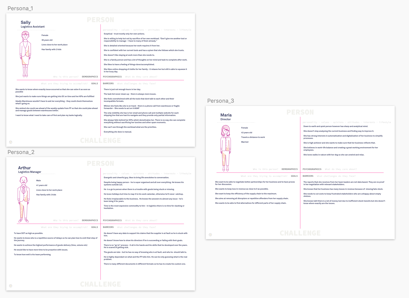 Once the market research had been synthesised, the key pain points emerged resulting in first hypothesis statements which I then started validating through discovery interviews with users representing different logistic roles. Questions were focused on understanding users’ workflow, pain points, needs, and their everyday tools.
