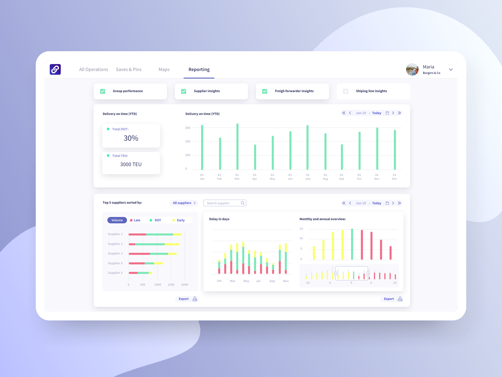 In order to learn about these tasks; the activities like the ‘Jobs To Be Done’ and Customer Journey workshops were conducted with users. That uncovered the most actionable steps in the users daily workflow and indicated data sets that trigger actions. After visually interpreting the data, it was incorporated into the UI in the form of ‘smart time line’ and Purchase Order summary with prediction of delayed and early freight, with possibility to filter and sort the results.